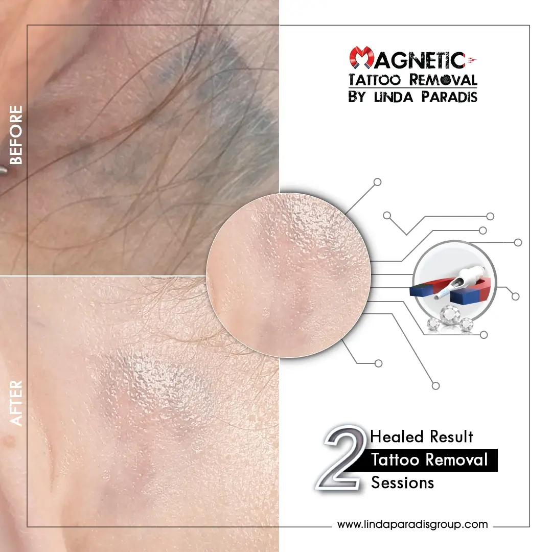 Removing tattoos or semi-permanent makeup such as BB Glow or Baby Glow treatments from the cheeks is a delicate process due to the thin skin and facial muscles. The magnetic removal method ensures that the extraction of pigments is done with precision and care, minimizing the risk of scarring, and promoting a smoother healing process.