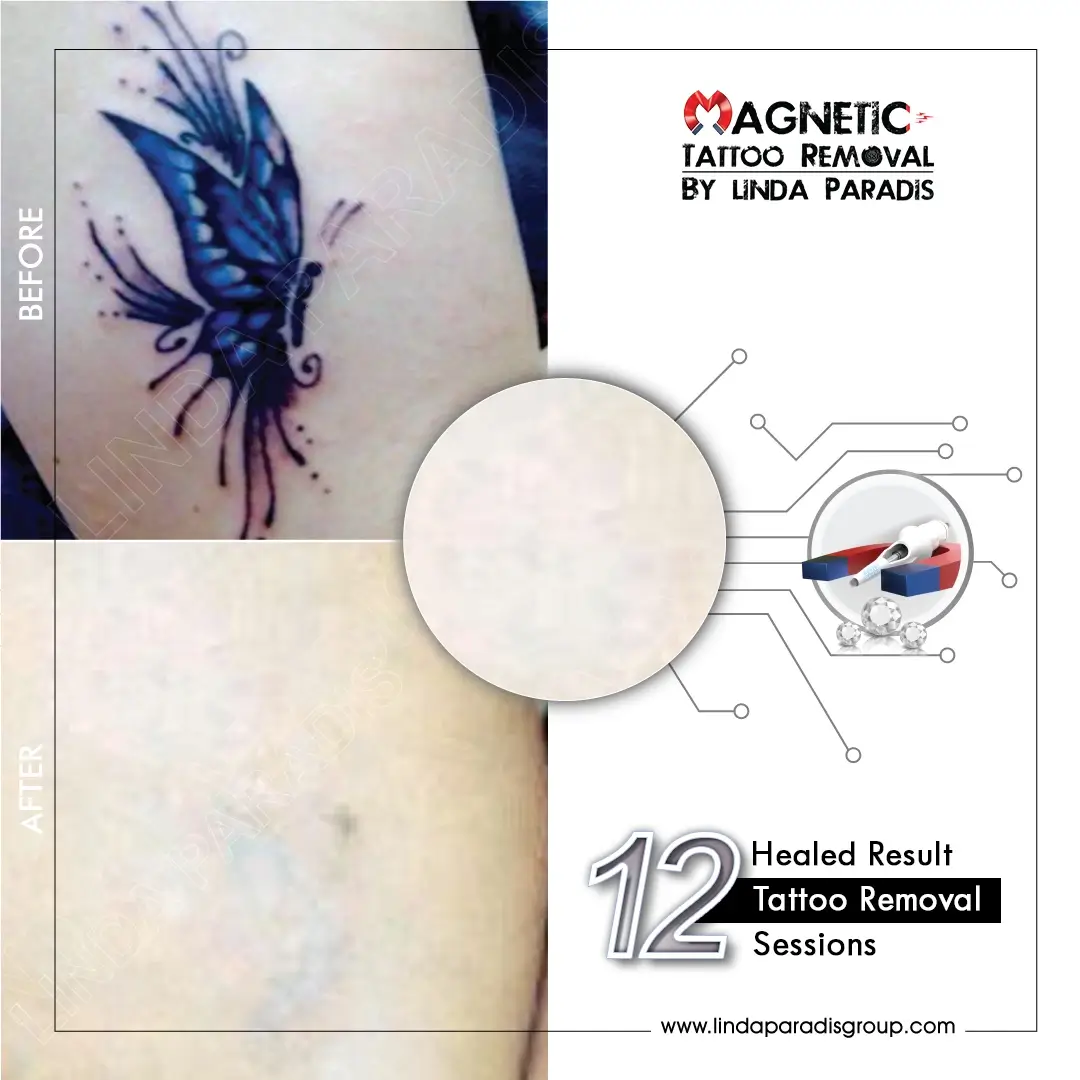 Unlike laser treatments that can burn the skin and alter ink colors, such as turning neon yellow to dark mustard, the Magnetic Tattoo Removal technique enhances blood flow and significantly aids in skin repair, recovering 80% to 90% of body tattoos damage on scars. This makes it an ideal option for clients seeking safe and effective removal of body tattoos, whether for immediate results or older tattoos.